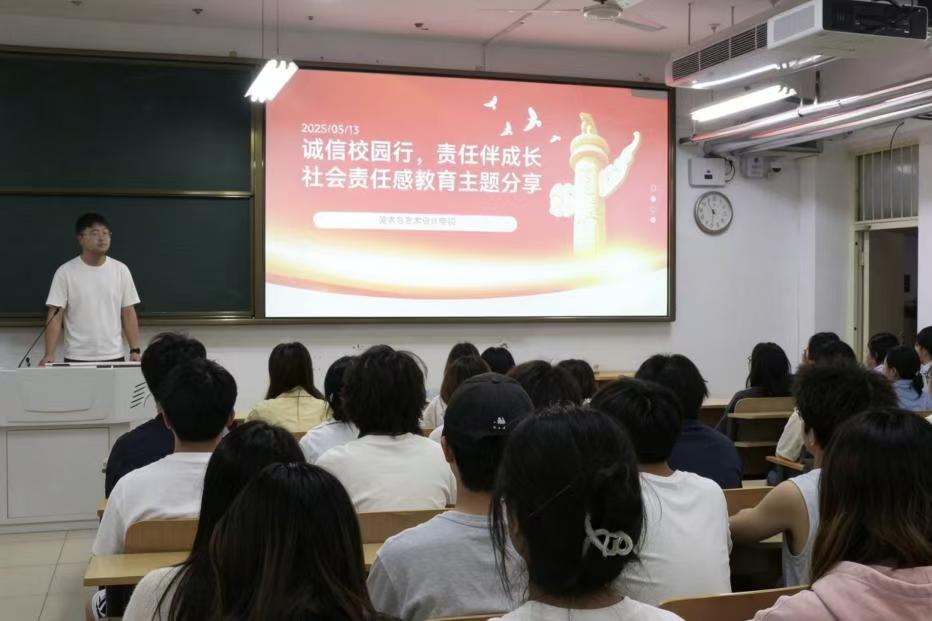 活动现场,资助专干余老师围绕“诚信”与“责任”两大核心,结合校园生活实例、社会热点事件及艺术专业特色展开分享。从学术诚信的规范要求,到艺术创作中的原创精神与诚信操守,再到新时代青年肩负的社会责任,生动阐释了“诚信是立身之本、责任是成长之基”的深刻内涵。在互动交流环节,同学们结合自身专业学习与生活经历踊跃发言,分享了对“诚信做人、责任做事”的理解与感悟。
