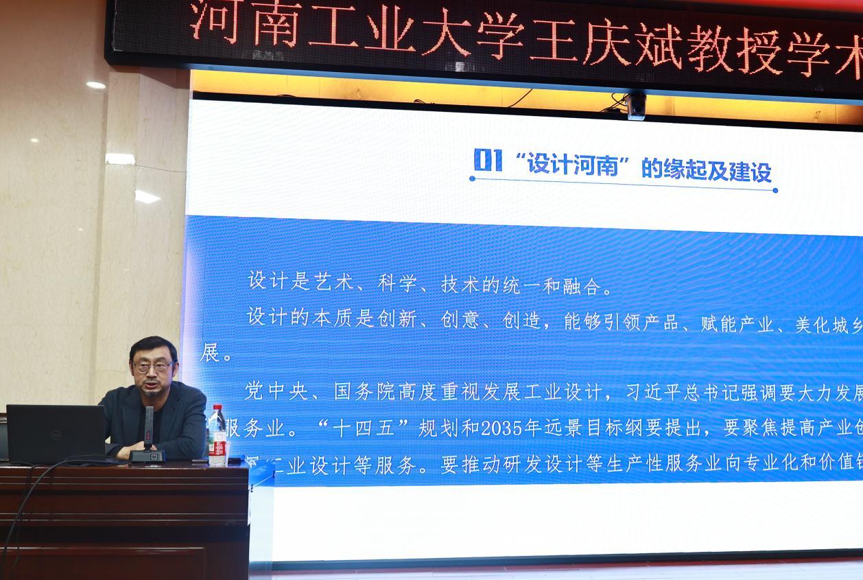 本网讯(任泽华/文 吕星意/图) 9月22日下午,应我院邀请,河南工业大学设计艺术学院院长、河南省工业设计研究院院长、博士生导师王庆斌教授,在图书馆一楼报告厅作题为“文化创意的设计与实践——以设计河南为例”的学术报告。报告会由我院副院长陈晅嵘主持,我院师生代表及南阳农业职业学院部分师生共计200余人参加。