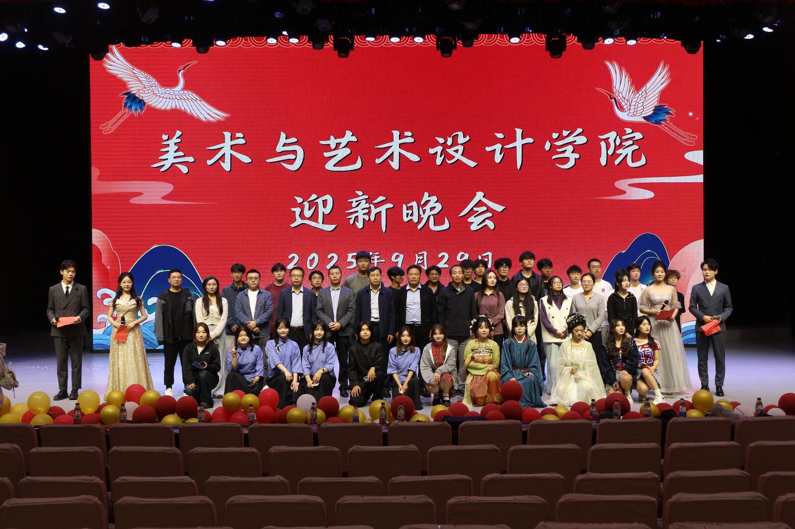 本网讯(通讯员 王若凡/文 唐潇漩/图)为帮助2025级新生快速融入大学校园,感受艺术的独特魅力,9月29日,美术与艺术设计学院于中区演播厅举办2025级新生开学典礼暨迎新晚会。美术与艺术设计学院党委书记耿耀敬、院长曹天成,党委副书记张会武,副院长周子强、陈晅嵘、胡振江出席,全体辅导员及2025级新生参加。