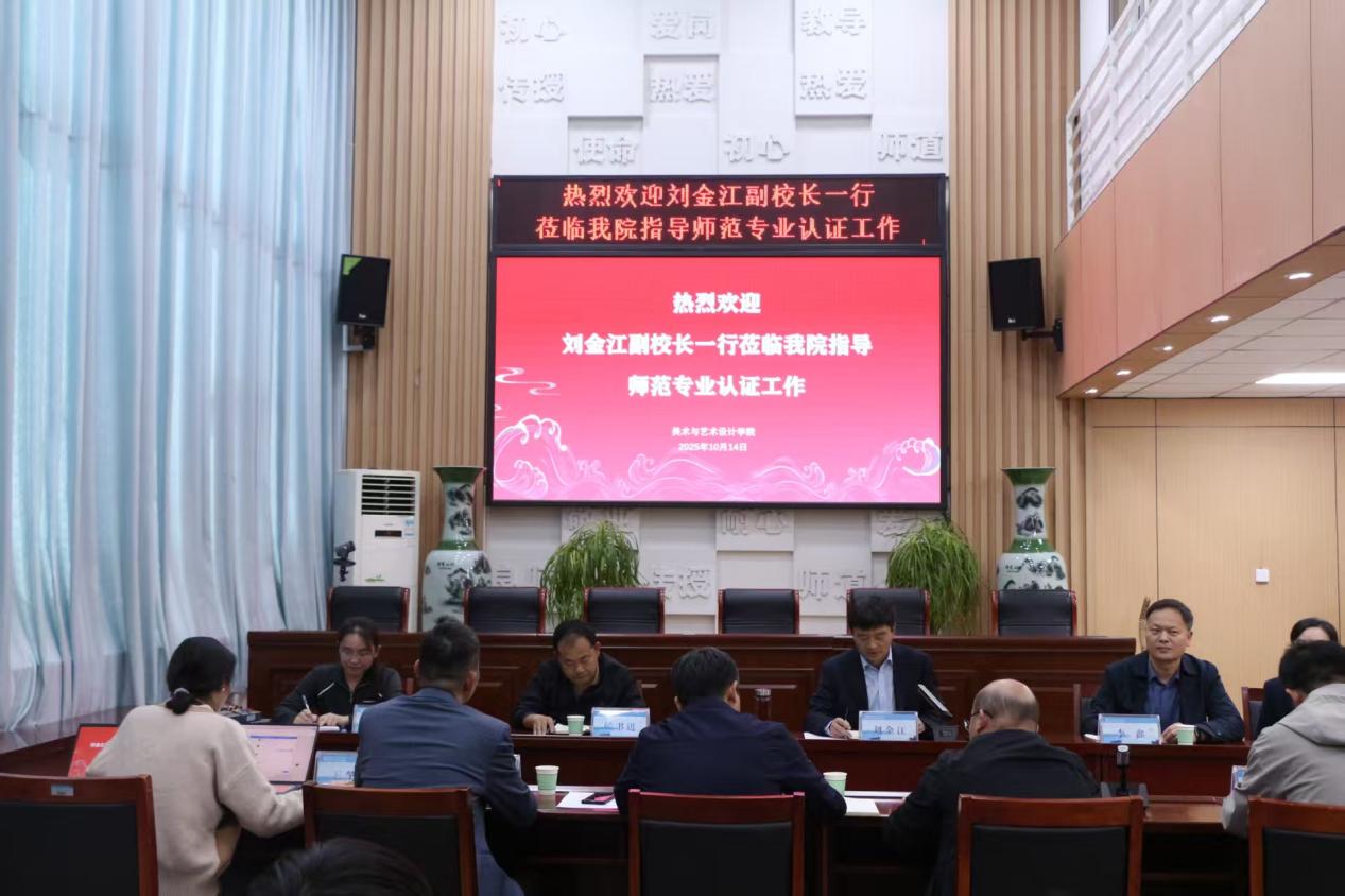 为扎实推进美术学专业师范认证准备工作,10月14日,刘金江副校长到我院调研美术学(师范)专业认证准备工作,学校教务处负责同志陪同调研,美术与艺术设计学院全体领导班子、专业负责人、教学管理人员及美术学专业教师代表参加调研活动。