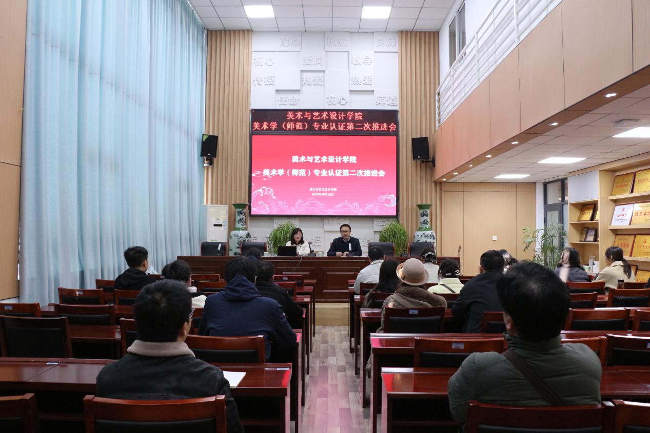 为持续推进师范专业认证工作,确保各项任务高质量完成,10月22日,美术与艺术设计学院于三楼会议室召开美术学(师范)专业认证第二次推进会,学院邀请教育科学学院的刘文雯老师讲解师范专业认证的相关材料规范整理工作,美术与艺术学院副院长胡振江及全体美术学专业老师参会。