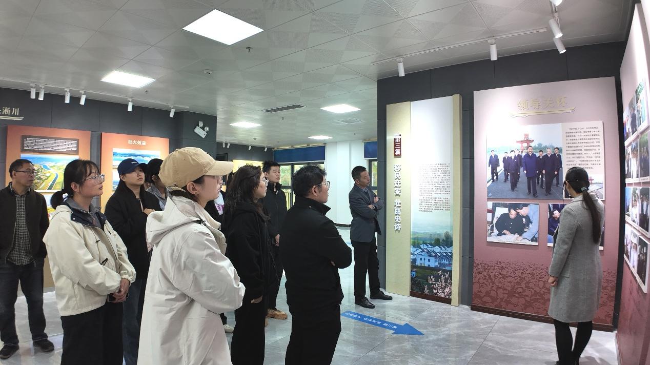 随后,师生们走进南水北调淅川移民展览馆。馆内通过多种展示形式,全面再现了移民搬迁的壮阔历程。墙上悬挂的习近平总书记考察淅川时的照片,成为馆内最动人的精神坐标。讲解员详细介绍了移民工作的背景、过程与成果,让师生们真切感受到了移民群众“舍小家为大家”的无私奉献精神。