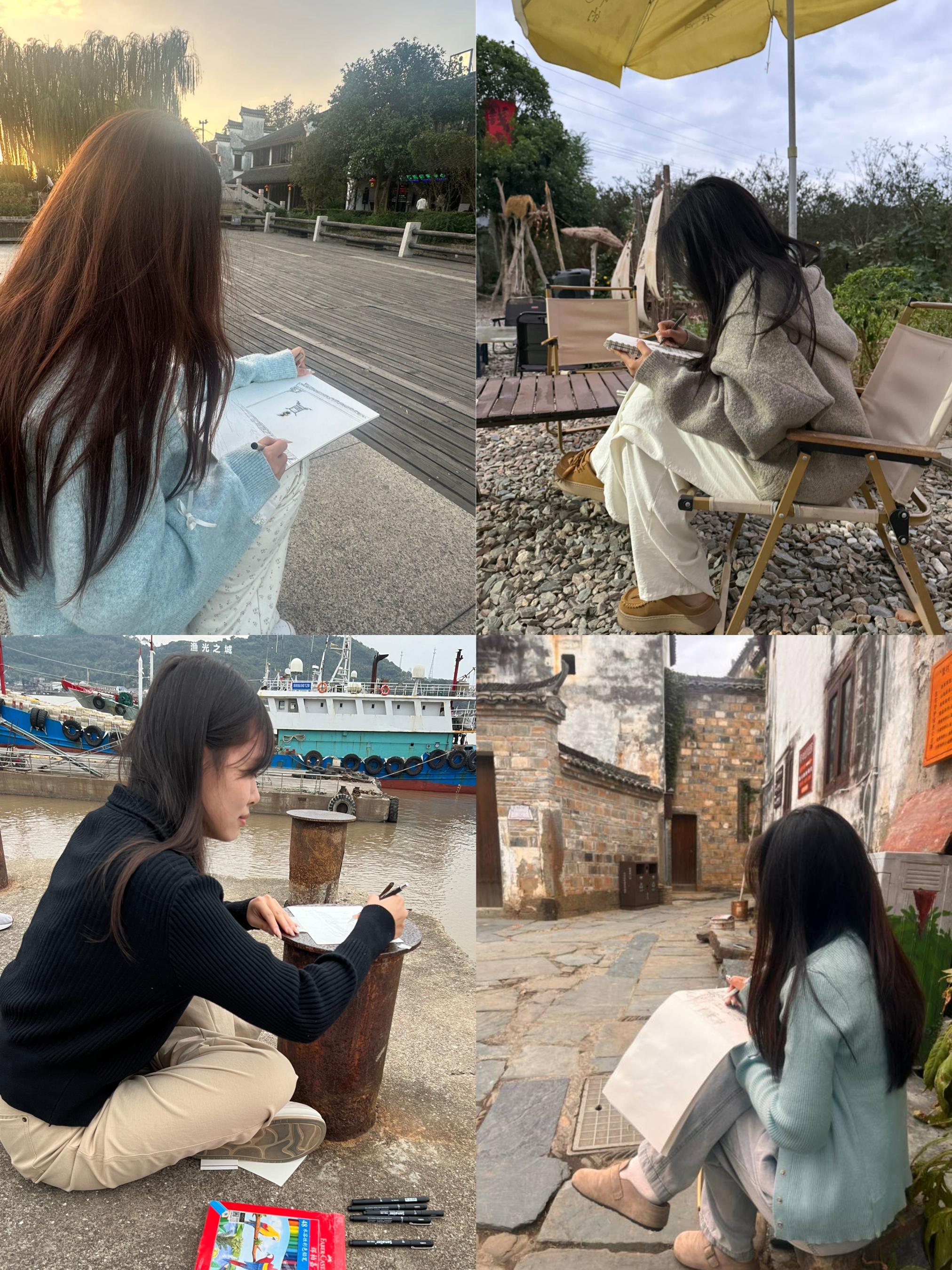 10月16日下午,同学们来到中国陶瓷博物馆。馆内藏品丰富、工艺精湛,生动展现了从传统到现代的设计美学变迁。通过深入研究传统工艺,积累了丰富的传统文化素材库。10月18日同学们抵达婺源写生基地进行浏览学习,通过老师的点评,使同学们深化了专业洞察力,并同步提升了手绘表现力与设计思维。10月21日同学们前往中国美术学院,参观第十二届中国国际海报双年展。通过参观国际顶级海报双年展,同学们不仅拓宽了国际设计视野,更深入理解了行业的前沿趋势与创新理念。10月27日在宁波石浦渔港写生讲评环节,老师结合渔港实地,评析同学们渔港主题写生作品的得失。并给出针对性指导,助学生将生活场景转化为设计佳作。