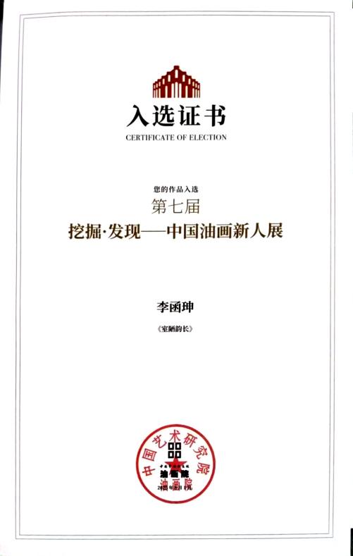本网讯(通讯员 李国永)近日,由中国艺术研究院油画院举办的第七届“挖掘·发现——中国油画新人展”入选结果揭晓,我院2022级美术学专业学生李函珅创作的油画《室陋韵长》成功入选。