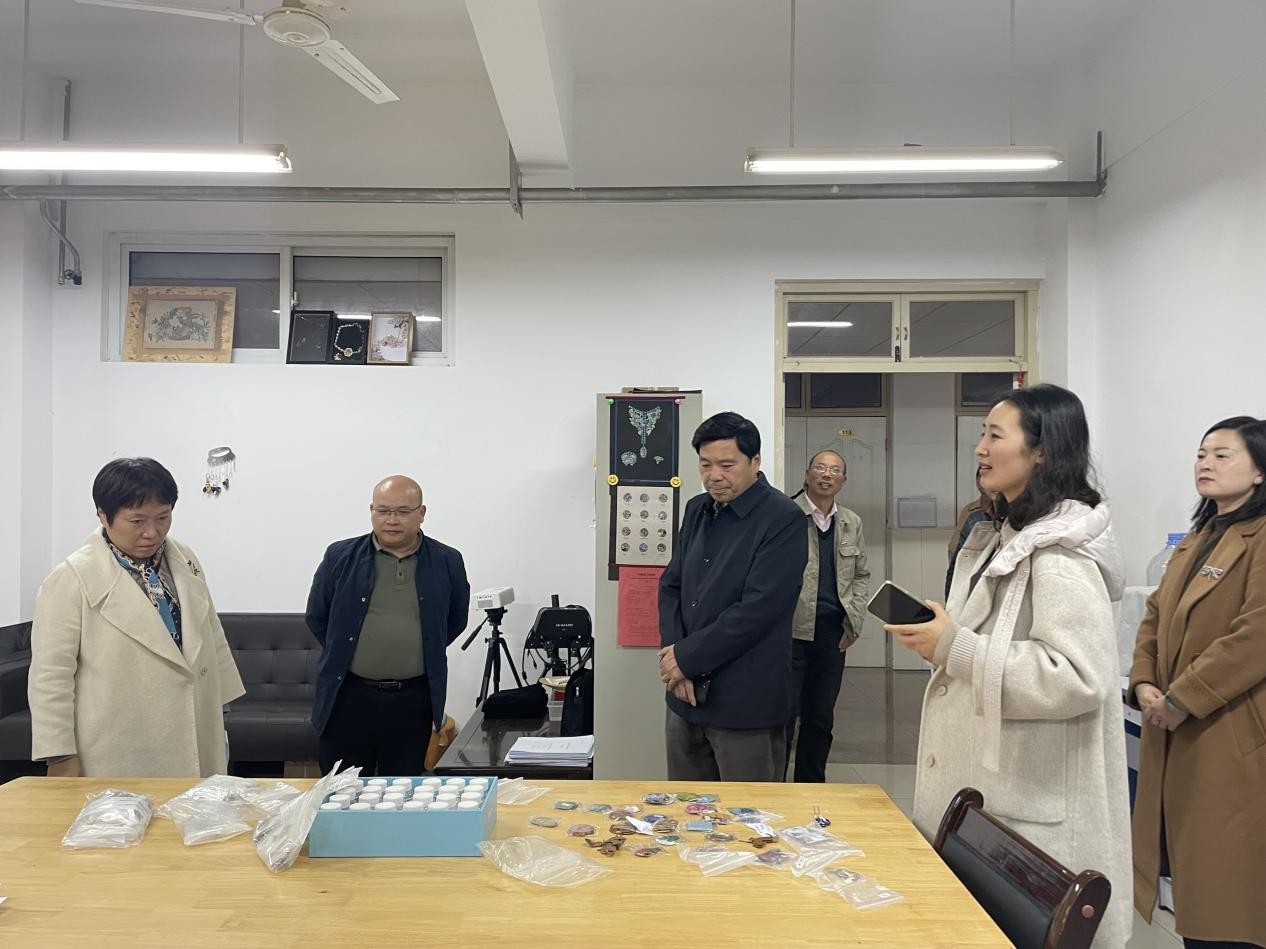 近日,南阳市科技局二级调研员王宇、平台科副科长冀楠楠、一级主任科员张天云等考察组一行四人莅临我院,对南阳市玉产品重点实验室建设情况进行考核。学校科技处副处长张淼、平台科科长王鹏飞陪同考察,学院副院长陈晅嵘、工艺美术系主任杨金鸥及相关专业教师参与考核验收工作。