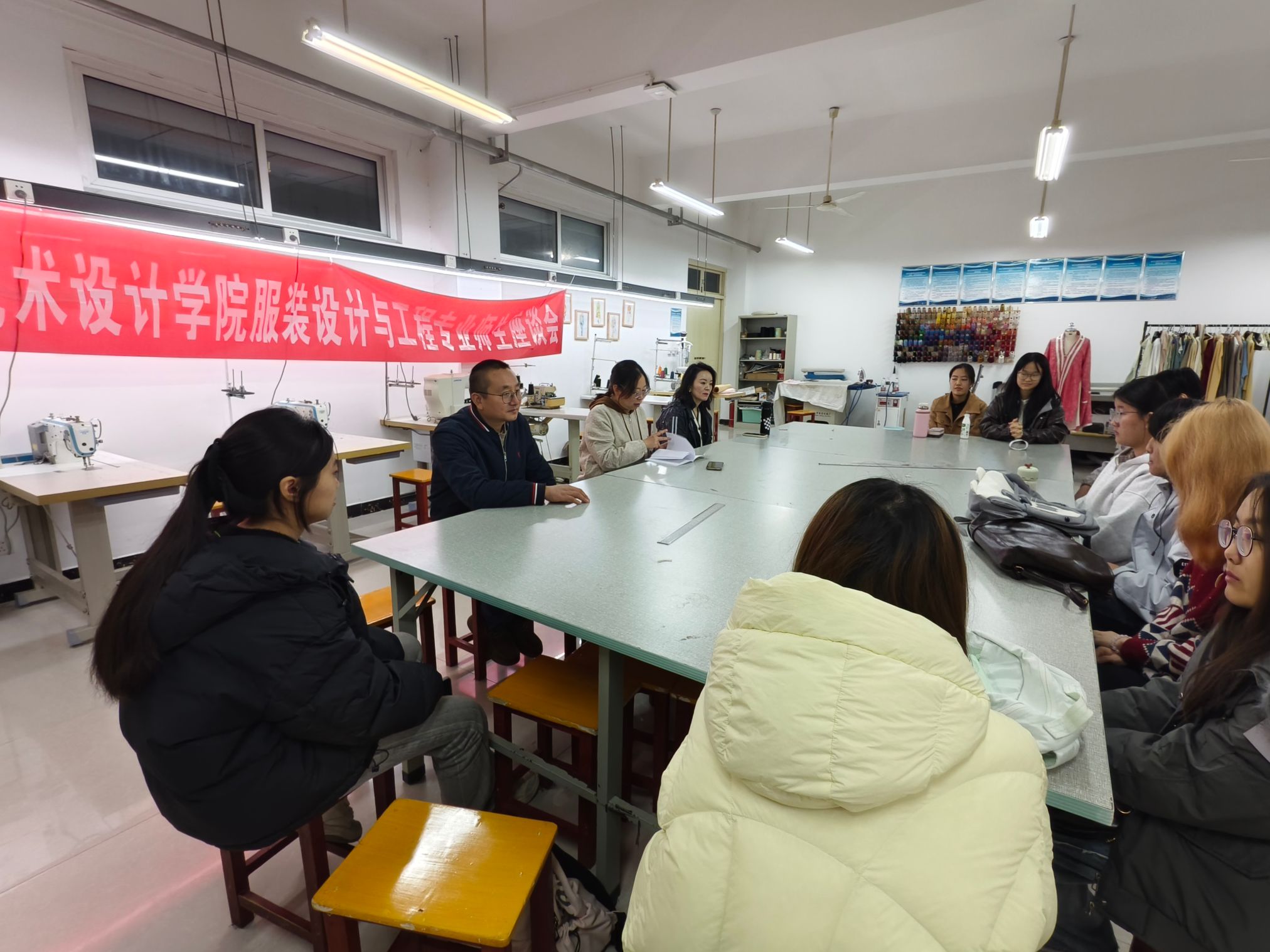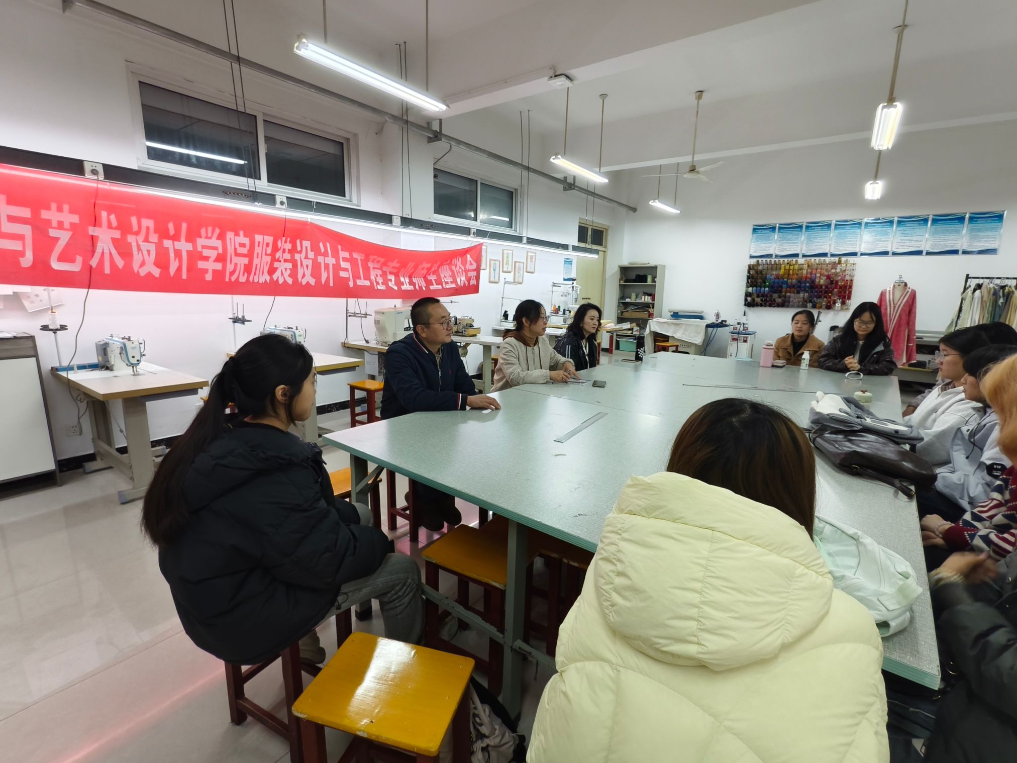 2025年10月29日,美术与艺术设计学院服装系在科技楼111实训室举办了一场以“学风建设与学业规划”为主题的师生交流会。系主任刘莹与张才前、孟少妮两位副教授共同出席,与2025级服装设计与工程专业新生代表展开深入交流,旨在帮助学生明确专业方向、科学规划学业路径。