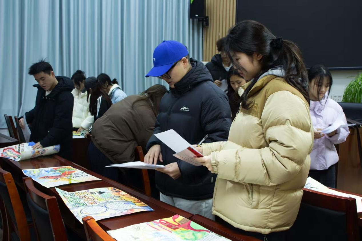 大赛分为作品创作与收集、作品评比、最终评奖三个环节。在作品的创作与收集阶段,我院同学紧扣主题,立足专业特色,通过系统调研、科学规划与精心创作,以绘画形式全面展现了对“全民反恐”主题的深刻理解。作品内容涵盖恐怖主义危害性、反恐法律法规、防范应对及自救互救技能等重点领域,既彰显了过硬的专业功底,又有力传播了“反恐防恐,人人有责”的核心理念。在作品点评环节,评审组组长从准确传达反恐理念、多维度把握主题内涵等方面进行了专业点评,充分肯定了作品的版面设计与色彩运用,并就部分作品在反恐知识准确度方面提出了优化意见,最终获奖作品将在学院宣传栏进行集中展示。