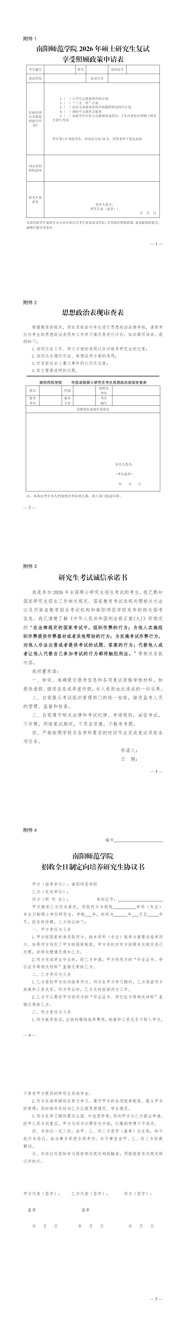 4.南阳师范学院招收全日制定向培养研究生协议书