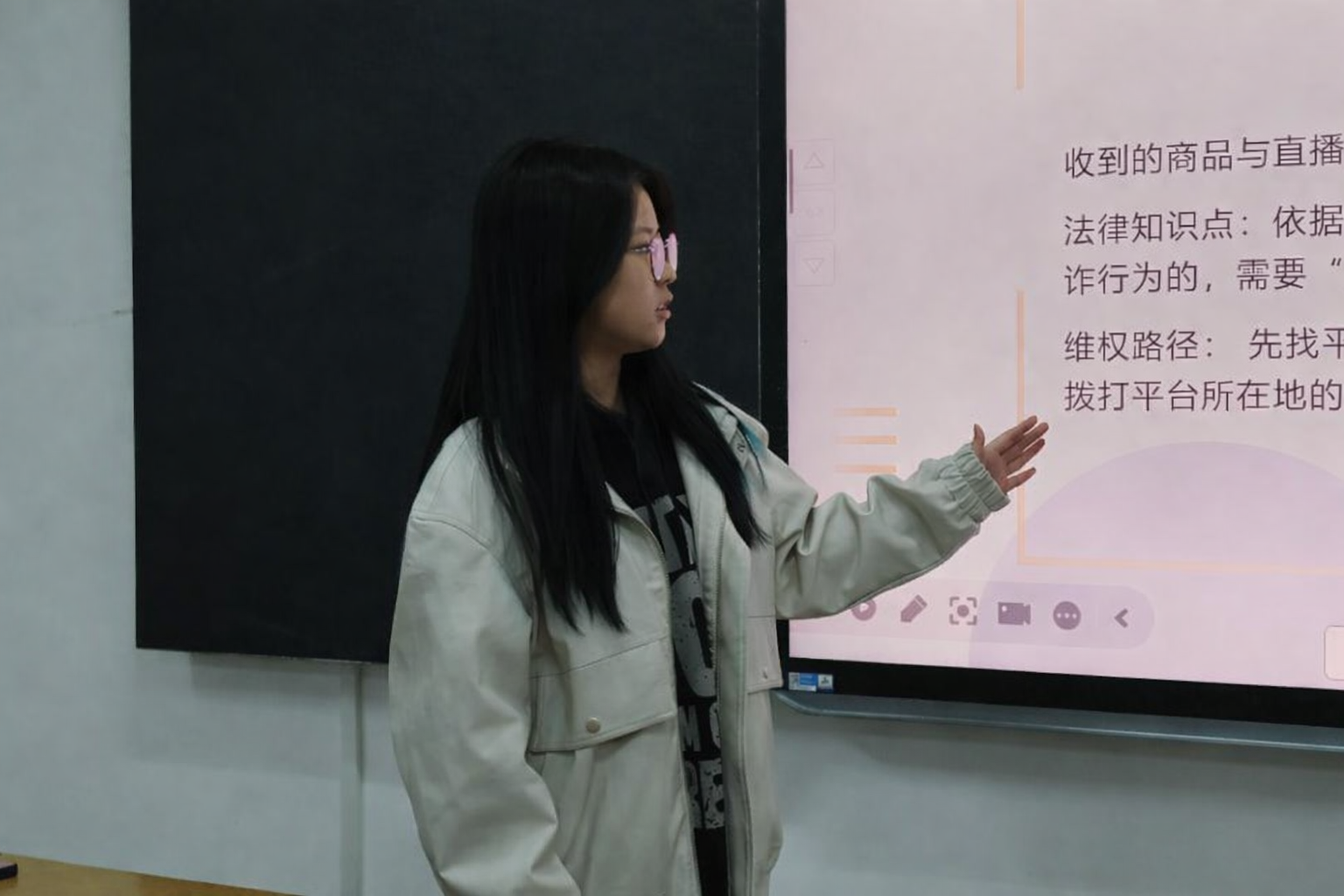 宣讲伊始,主持人以消费者权益保护核心要点为切入点,聚焦网络购物、预付式消费、霸王条款及概不负责、直播带货四大高频消费侵权领域,结合货不对板、商家卷款跑路、直播宣传与实物严重不符等典型侵权案例,深入剖析当前消费领域侵权行为的具体表现形式,精准解读相关法律条款,明确“退一赔三”、霸王条款无效等关键法律知识点,让在场同学对消费维权有了直观且系统的认知。在互动答疑环节,志愿者针对同学们结合自身生活经历提出的消费困惑,进行详细解答,手把手传授保留消费凭证、规范拨打12315热线、线上投诉举证等实用维权方法,切实解决同学们“不知如何维权、不会维权”的难题。活动尾声,志愿者将复杂的维权方法凝练成协商沟通、电话举报、平台投诉、公开曝光四大高效实操步骤,进一步帮助同学们厘清维权思路、简化维权流程,真正将消费维权知识转化为保护自身合法权益的实际本领。