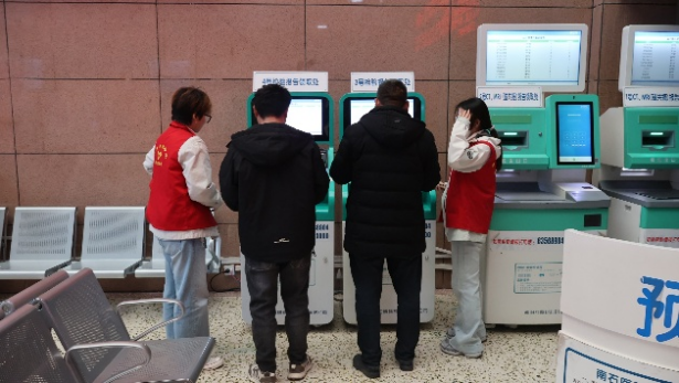 活动开展前,志愿者们统一身着红色马甲,在医院工作人员的专业指导下接受了系统的岗前培训,熟练掌握志愿服务相关流程与技能,为后续提供专业、高效的便民服务打下坚实基础。活动现场,志愿者们分工明确、各司其职,以饱满的热情投入志愿服务:主动上前搀扶行动不便的老年患者,耐心为就医群众指引科室位置,并手把手协助患者完成挂号、缴费、打印检验报告等自助设备操作;部分志愿者配合医护人员引导患者有序候诊,做好诊疗辅助工作。面对患者及家属的各类疑问,志愿者们始终耐心倾听、细致解答,用温暖的话语缓解就医焦虑,用贴心的行动提升服务效率,切实减轻了医护人员的工作负担,也为前来就医的群众送去了春日里的暖心关怀。志愿者与医护人员的默契配合,大幅提升了现场就诊效率,赢得了患者与院方的一致好评。