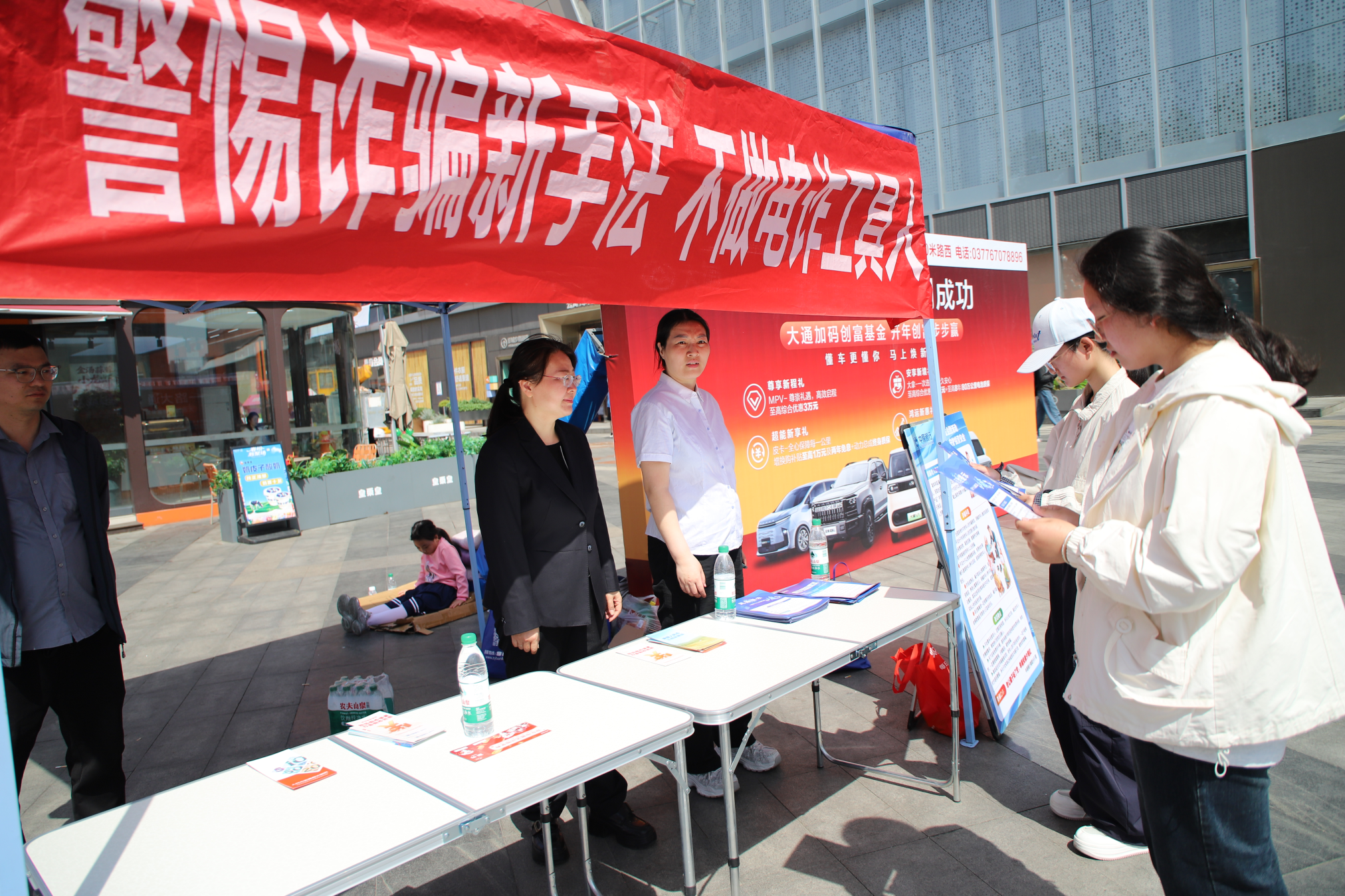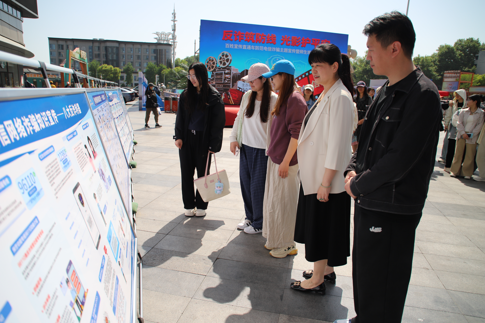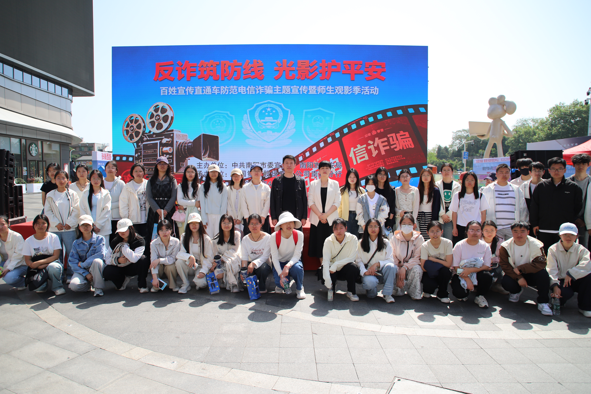 本网讯(通讯员 来会会 史金凤/文 李君熙/图)为筑牢校园反诈安全防线,提升大学生防范电信网络诈骗的意识和自我保护能力,4月18日上午,南阳师范学院数学与统计学院组织百余名师生代表前往摩根吾悦广场,参加南阳市“反诈筑防线 光影护平安”——百姓宣传直通车防范电信诈骗主题宣传暨师生观影季活动。