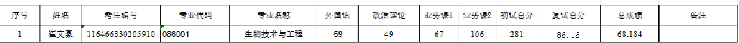 2026年生命科学学院研究生第四批调剂考生成绩公示