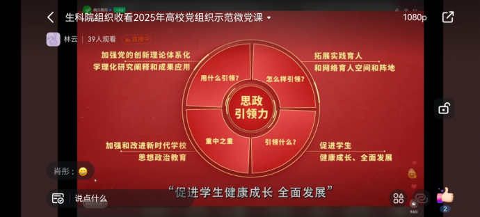 此次收看学习,让同学们对思政引领的重要性及自身成长目标有了更深刻的认识。大家纷纷表示,将以微党课中的理念为指引,把思政学习与生命科学专业学习相融合,主动提升综合素养,努力成长为可担当民族复兴大任、能为生命科学领域发展贡献力量的时代新人。