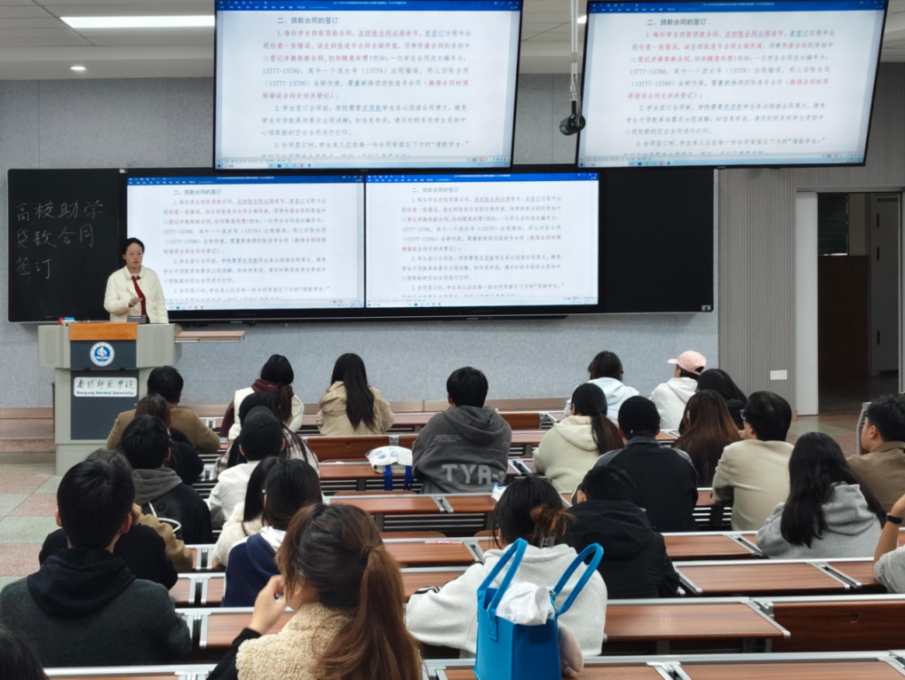 本次会议的有序召开,不仅能够为高校助学贷款合同签订工作提供标准化指导,有效提升办理效率,更能通过政策解读与风险提示,帮助同学们全面了解助学贷款权责与安全要点,助力其安心完成学业。