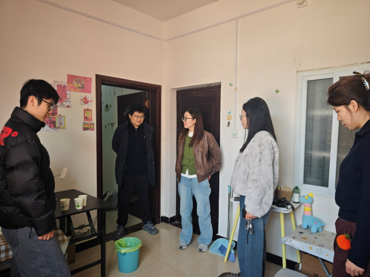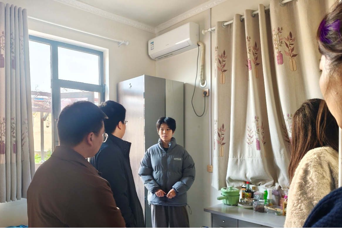 走访过程中,老师们重点围绕“环境安全、学习状态、生活保障、心理关怀”四个方面展开实地摸排和深入交流。老师们详细查看了学生的住宿条件,包括房间通风采光、消防设施配备、用电情况及楼宇安防等,现场提醒同学们规范用电、不私拉乱接电线,关注冬季取暖和消防安全,切实把“安全第一”的理念落实到日常生活细节中。