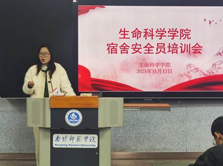本网讯(通讯员 院景/文 王椿钰/图)为进一步夯实校园安全管理基础,切实保障住宿学生的人身与财产安全,11月12日下午,生命科学学院在综合楼101开展宿舍安全员专题培训会。本次会议由2025级辅导员刘亚楠老师主持召开,生命科学学院全体宿舍安全员参与。