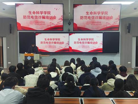 本网讯(通讯员 孙煜斐/文 王椿钰/图)为切实提升同学们防范电信网络诈骗的意识和能力,守护自身财产安全与合法权益,11月12日下午,生命科学学院在综合楼101开展防范电信诈骗培训会。本次会议由李兆锋老师主持召开,团委书记韩鸿基、各年级辅导员出席,全体宿舍安全员参加。