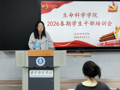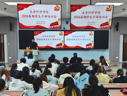 本网讯(通讯员 潘梓妍/文 王普/图)为促进各部门学生干部之间的交流与合作,进一步加强学生干部队伍建设,提升学生干部的综合素质,4月1日下午,生命科学学院在综合楼101召开2026年春期学生干部培训会。本次会议由23级辅导员李兆锋主持召开,学院党委副书记韩鸿基与各级辅导员常佳、刘亚楠等出席,生命科学学院全体学生干部参加。