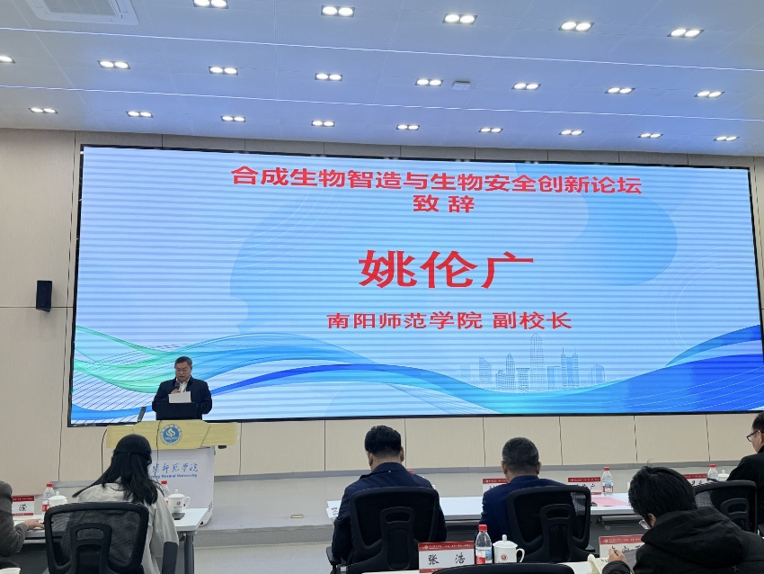 本网讯(徐丹丹/文 李青聪/图)2025年11月14日至16日,由南阳师范学院主办,生命科学学院和科技处承办的“合成生物智造与生物安全创新论坛”在我校科技楼一楼召开。本次论坛汇聚了来自中国科学院、江南大学、天津大学、华东理工大学、大连理工大学、上海农科院、湖北工业大学、河南农业大学、重庆三峡学院、重庆文理学院等省内外十余所知名高校、科研机构及企业专家,我校姚伦广副校长出席开幕式,开幕式由生命科学学院院长牛秋红主持。
