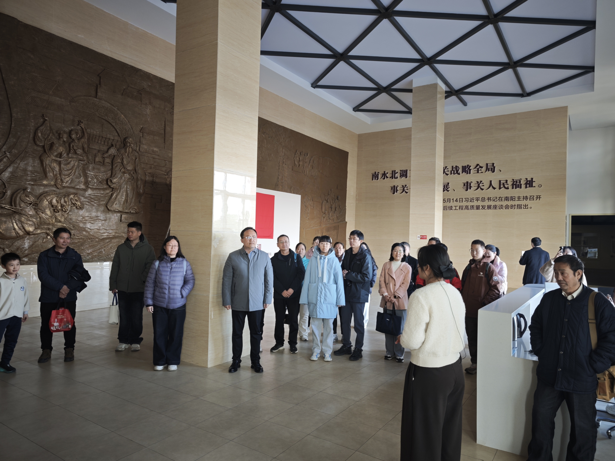 活动首站,会员们来到了淅川南水北调移民精神教育基地。在讲解员的深情讲述中,大家通过一幅幅珍贵的历史图片、一件件朴实的移民物品、一段段感人的影像资料,全面了解了为确保一渠清水永续北送,淅川库区数十万移民群众舍小家、为大家,泪别故土的动人故事和各级党员干部克难攻坚、无私奉献的壮阔历程。伟大的“移民精神”——忠诚担当、大爱报国,深深触动了每一位在场人员。大家无不为移民乡亲的深明大义和国家建设的宏伟艰巨所震撼,纷纷表示要将这种胸怀大局、甘于奉献的精神内化于心、外化于行,在自身的科研教学工作中勇于担当,服务国家发展需要。