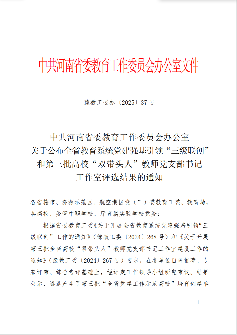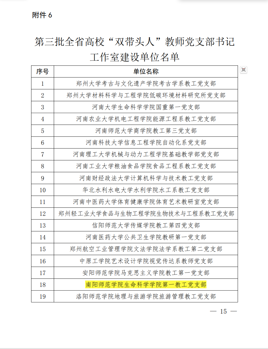 近日,河南省委教育工委公布全省教育系统党建强基引领“三级联创”等活动评选结果,生命科学学院第一教工党支部凭借扎实的党建工作基础、鲜明的“党建+教学科研”融合特色,成功获评全省高校“双带头人”教师党支部书记工作室,这是我院党建工作的重要突破,也是上级部门对我院基层党建工作成效的充分肯定。