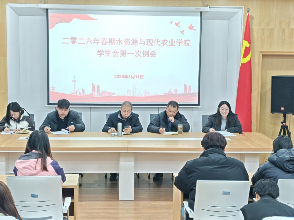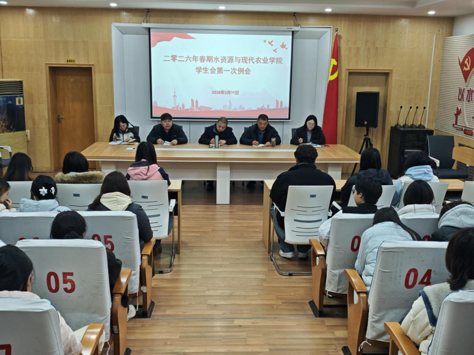 本网讯(通讯员 李珂 郭晶晶 刘冉/文 王贵颢/图)为深入贯彻落实学校关于加强学生组织建设、提升学生自主管理能力、助力学生全面发展的工作部署,2026年3月11日,水资源与现代农业学院在东区图书馆305会议室顺利召开2026年春期学生会第一次例会。学院党委书记曹鹏、全体学生工作队伍人员参会,会议由团委副书记李珂主持。