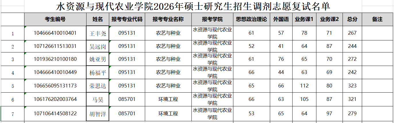 上一条:水资源与现代农业学院2026年硕士研究生调剂志愿考生(第一批)成绩公示