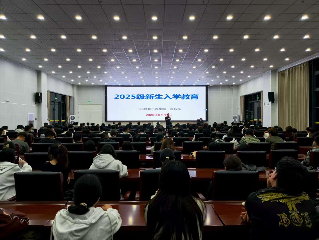 本网讯(通讯员 王继贤/图 刘欣瑜/文)为帮助2025级新生深入了解专业内涵、明确学习方向,土木建筑工程学院于9月17日晚在留学生公寓学术报告厅开展了“学业发展教育”专题讲座。学院党委副书记张涛、副院长蒋耿民等参加,本次讲座由副院长蒋耿民主讲,25级全体新生参加讲座。