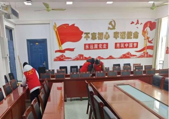 活动伊始,志愿者们首先分组前往实训楼会议室。志愿者们自备抹布、扫帚、拖把等清洁工具,对会议室进行了全方位、无死角的清扫。大家分工协作,配合默契,经过一个多小时的奋战,会议室窗明几净,桌椅排列井然,为接下来师生们的使用提供了一个舒适清爽的环境。