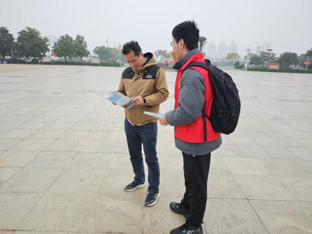 上午时分,身着红色马甲的志愿者们准时集结,迅速投入到环境清扫工作中。志愿者们分工协作,干劲十足。一组志愿者手持打扫工具,对广场地面、绿化带边缘、石阶缝隙中的烟头、纸屑、塑料袋等杂物进行拉网式清理。同时,另一组志愿者向过往市民特别是老年群体普及防范电信网络诈骗知识。针对当前电信诈骗手段翻新、作案手法隐蔽的特点,志愿者们结合防诈宣传单,用通俗易懂的语言向群众讲解“冒充熟人”“投资理财”“保健品推销”等常见诈骗套路。志愿者们通过真实案例以案说法,提醒市民牢记“不听、不信、不转账”的防诈要点。