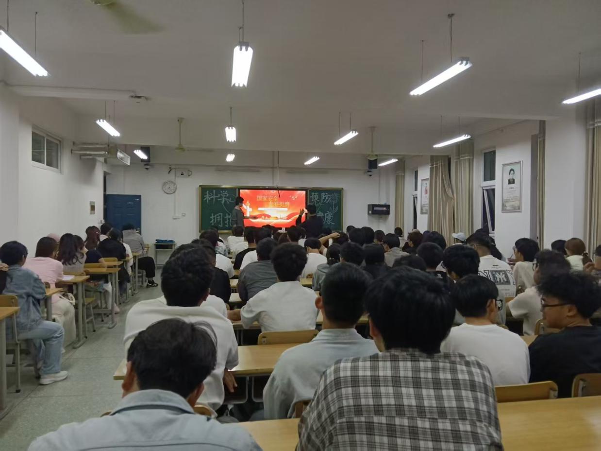 本网讯(通讯员 王天昊/图 王继贤/文)为深入贯彻总体国家安全观,引导青年团员厚植国家安全意识,以青春担当筑牢安全屏障,土木建筑工程学院于2026年4月12日晚在实训楼2505教室开展“国家安全,青春挺膺”主题团课,此次团课由学院组织部部长寇鑫主讲,学院共青团员学生参加。
