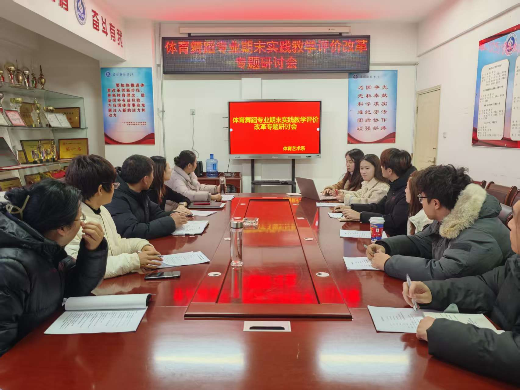 袁晓璐就本次期末实践教学评价改革的方式与举措作汇报说明,详细解读了评价办法、竞赛形式、竞赛规程及竞赛日程等核心内容。随后,体育艺术系全体教师与学生代表围绕竞赛议程、赛事项目设置、参赛组别划分等关键议题深入研讨、充分磋商。与会人员结合专业培养目标与学生实际能力水平各抒己见、凝聚共识,为后续赛事的顺利推进及实践教学评价改革的深化落实筑牢了坚实基础。