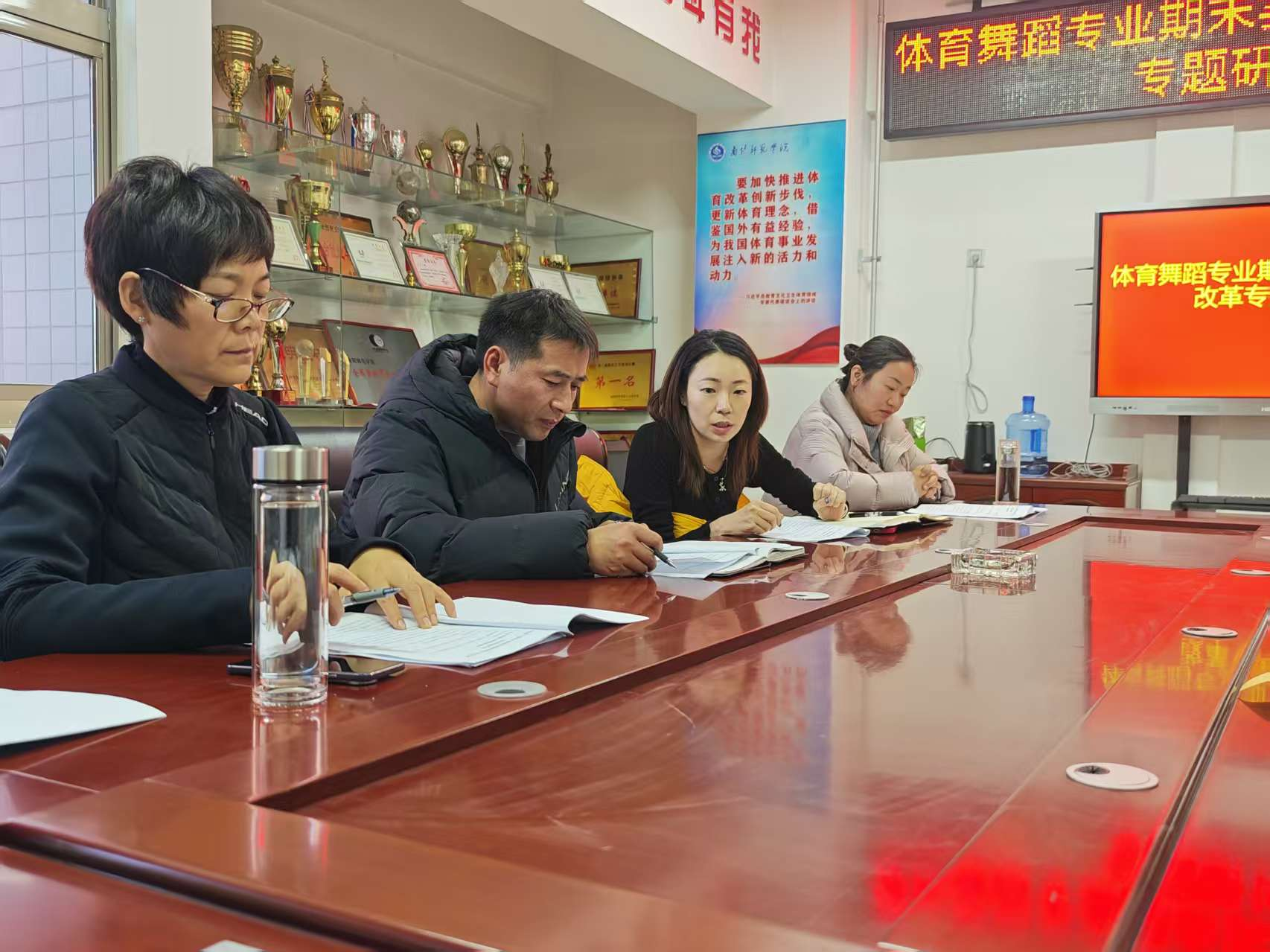 本网讯(文/袁晓璐、王静怡 图/李皓然)12月17日,体育舞蹈专业期末实践教学评价改革专题研讨会在体育馆301召开。体育学院副院长孔冲、体育艺术系主任周丛改、体育舞蹈专业全体教师及学生代表10余人参会,会议由体育艺术系主任周丛改教授主持。