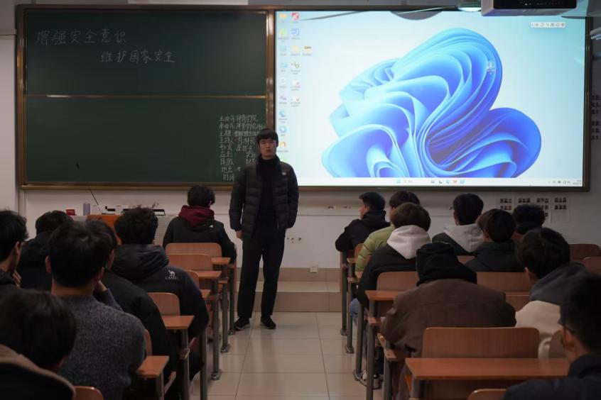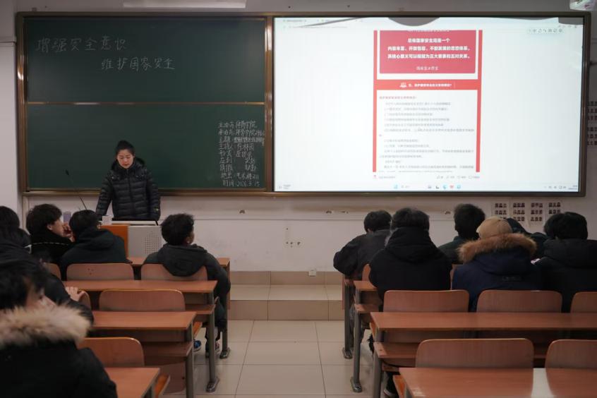 会议伊始,辅导员刘伟腾老师围绕国家安全基本知识展开讲解,通过通俗易懂的语言和实际案例,帮助同学们理解国家安全内涵及重要意义。辅导员符林园重点讲解日常安全防范知识,提醒大家保护个人信息、辨别网络谣言,增强自我保护意识。辅导员巩丰伟带领同学们共同学习国家安全相关法律法规,进一步强化同学们的法治观念与责任意识,引导大家知法、懂法、守法。辅导员翟冠华结合典型案例深入分析,帮助同学们识别危害国家安全的行为,提升防范和应对风险的能力。