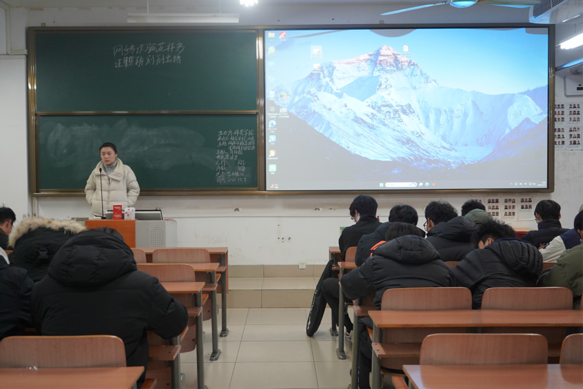 会议伊始,辅导员刘伟腾结合近期高校网络诈骗典型案例,详细讲解了网络购物诈骗、刷单返利诈骗、虚假客服诈骗、校园贷陷阱等常见诈骗类型的作案手法。同时,辅导员翟冠华通过通过图文展示、视频播放等形式,强调“三不一多”防骗原则:未知链接不点击、陌生来电不轻信、个人信息不透露、转账汇款多核实。最后,辅导员符林园再次强调同学们要提升反诈骗意识并鼓励同学们争做校园反诈“宣传员”,向身边人普及防骗知识,共同筑牢校园安全防线。