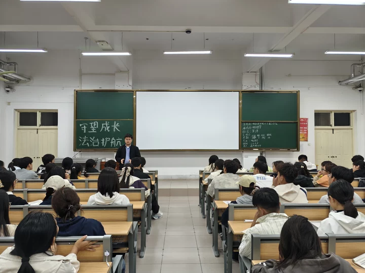 本网讯(通讯员 沈鹏超 韩跃/文 娄乐/图)为进一步助力同学们成长成才,增强法治意识,物理与电子工程学院于10月8日晚在逸夫楼W101、W103、W104、N208召开“守望成长,法治护航”主题班会。本次班会由25级辅导员艾克拜尔主持,沈鹏超主讲,25级全体学生参加。