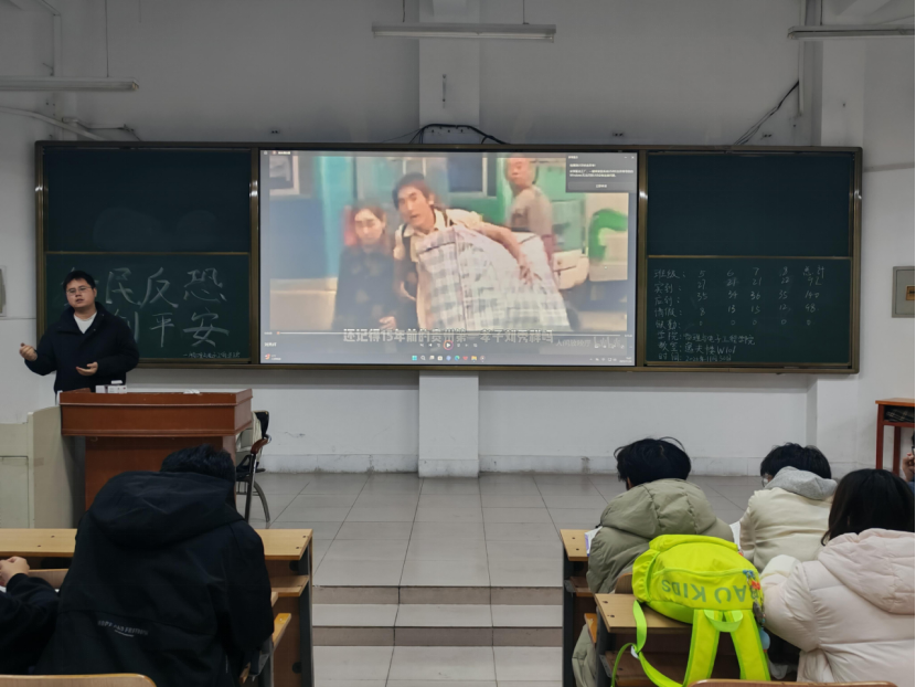 本网讯(通讯员 包聪会 孙璟垚/文 朱逸涵/图)为进一步增强同学们的反恐防恐意识,筑牢校园安全防线,物理与电子工程学院于11月30日晚在逸夫楼W101、W103、W104、N208召开“全民反恐,共创平安”主题班会。本次班会由25级辅导员艾克拜尔主持,沈鹏超主讲,25级全体学生参加。