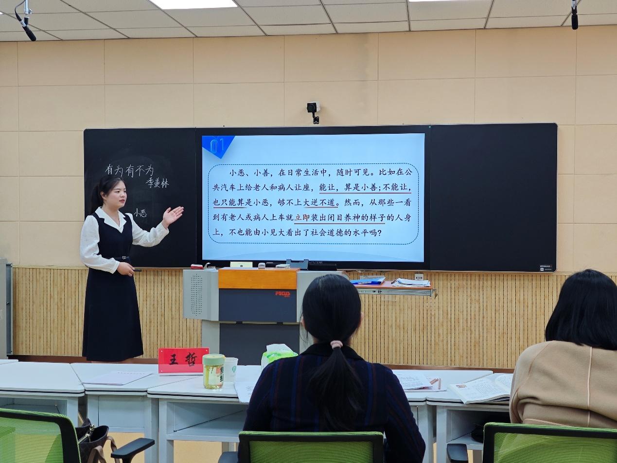 本网讯(巴纹纹/图文)为扎实推进师范生教学技能培养,助力文学院师范生在省级赛事中展现专业风采。10月17日下午,文学院于科技楼智慧教室234举办中学语文职前职后一体化成长工作坊磨课活动。活动特邀南阳市一线教学名师贾佳老师与文学院教学论专家魏丽苹副教授担任指导嘉宾,为备战河南省第二十三届师范类专业毕业生教学技能比赛的初中组选手康家欣进行专项辅导,文学院相关师生代表参与观摩学习。
