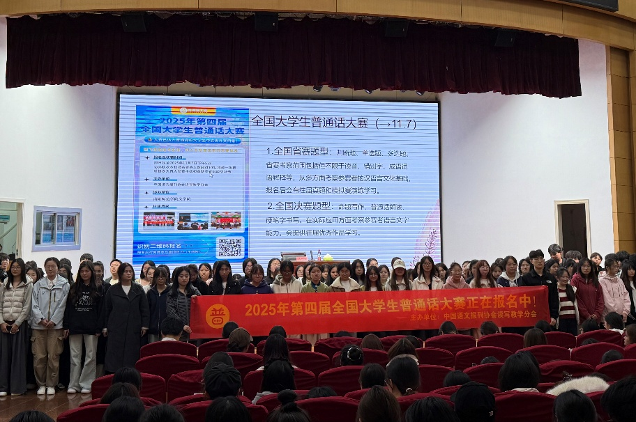 本网讯(通讯员季睿赵庆菲/文)为提升学生语言素养,增强文化自信,近日,文学院积极响应赛事号召,组织开展全国大学生普通话大赛动员工作。学院通过线上线下多渠道宣传,详细解读赛事规则与参赛流程,鼓励学生以赛促学,展现青春风采。