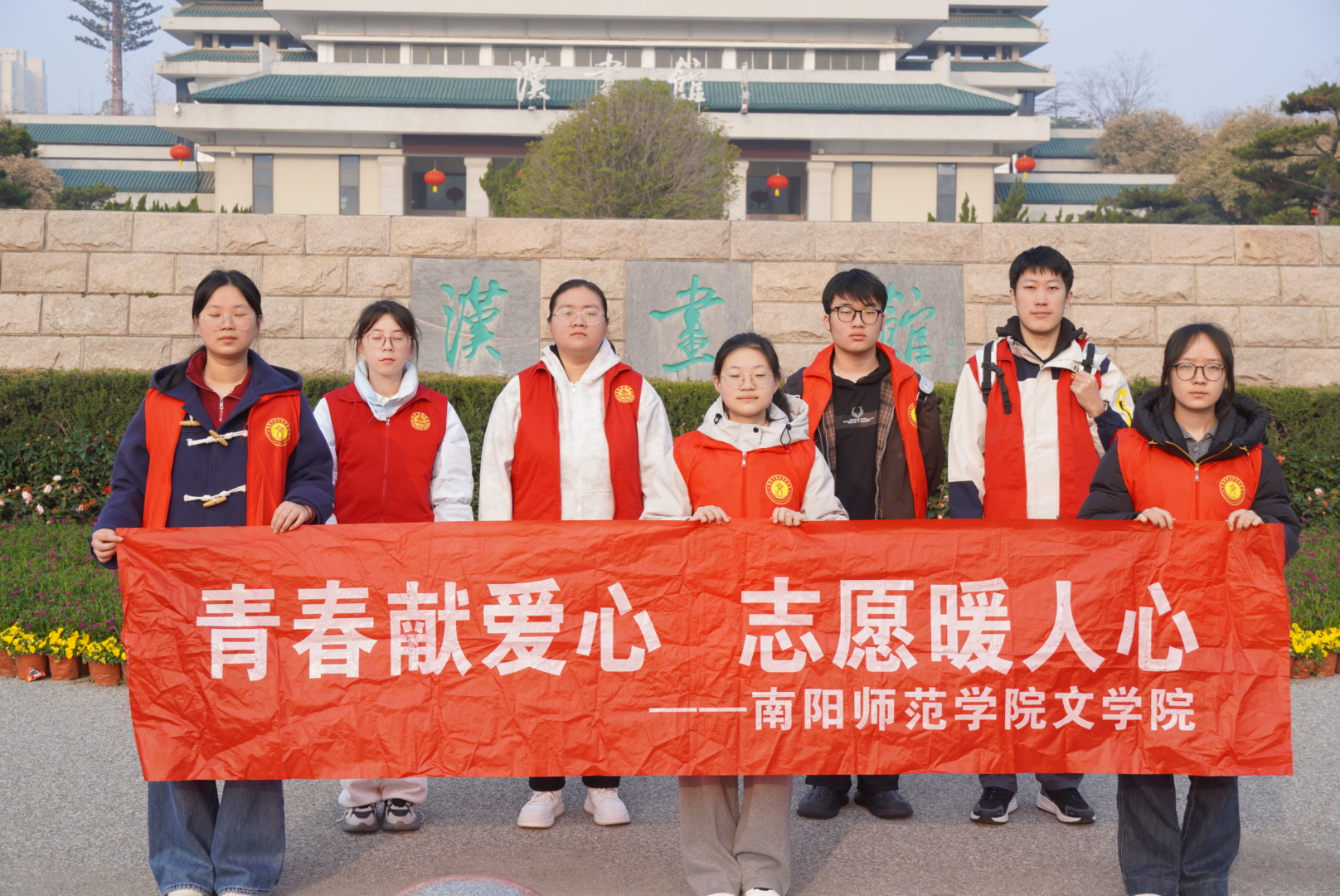 本网讯(程威 吴梦茹 王晴/文 郭一瀚/图)3月11日,南阳师范学院文学院在南阳市汉画馆开展了“探访汉画瑰宝,厚植文化根基”志愿服务活动,沉浸式感受汉代石刻艺术,传承中华优秀传统文化。