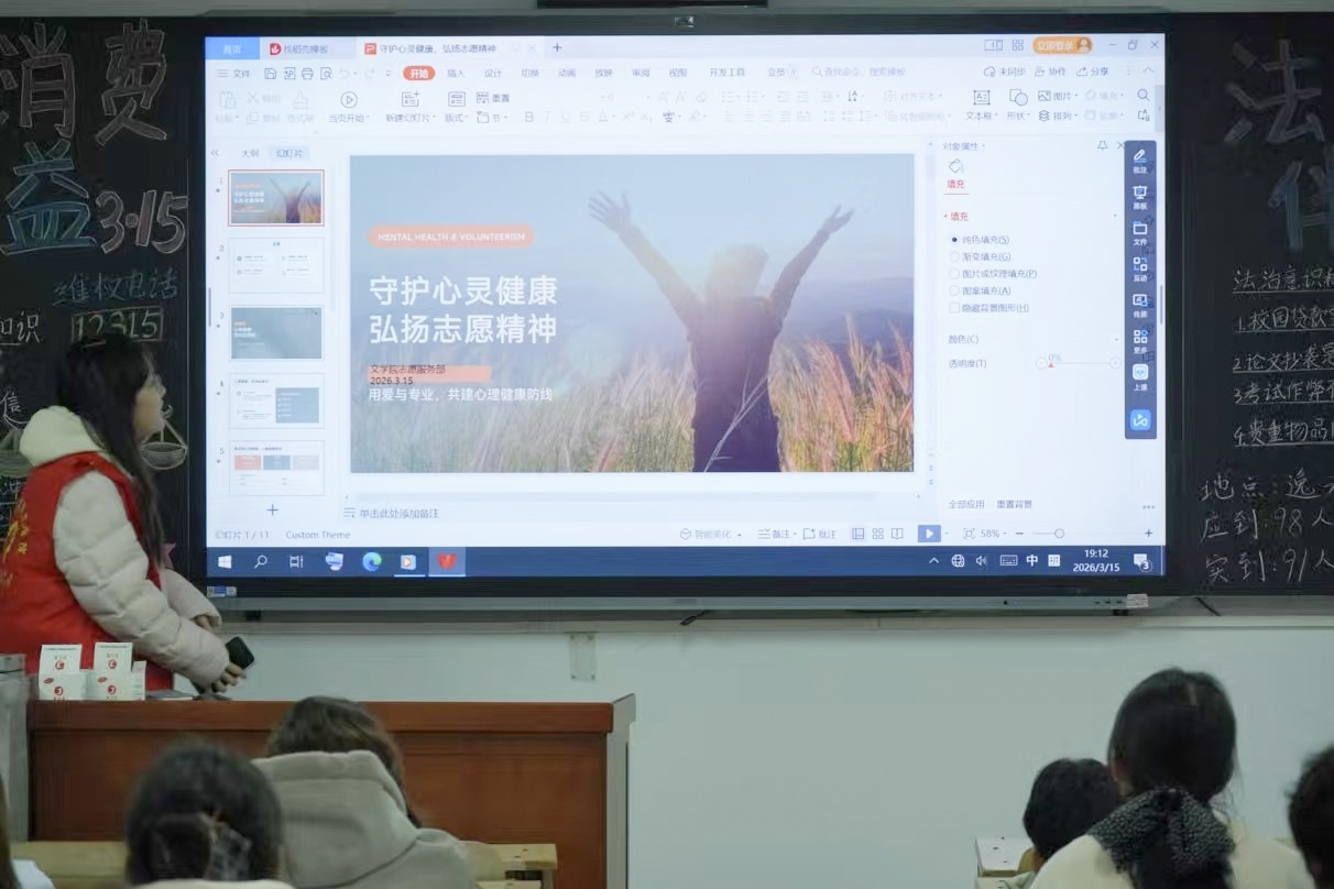此次宣讲活动不仅普及了心理健康知识,更以实际行动践行了“奉献、友爱、互助、进步”的志愿精神。未来,文学院学子将以雷锋精神为指引,持续投身心理健康志愿服务,让关爱与温暖在校园中接力传递,为构建和谐校园贡献青春力量。