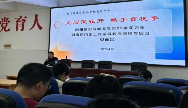 2026年4月7日至10日,南阳师范学院文学院组织汉语言文学专业大三学子,赴南阳市第二完全学校高中部开展为期四天的教育见习活动。本次见习以沉浸式一线教学观摩、实战化课堂试讲、专业化成长指导为核心,全方位助力学子夯实教学基础、提升从教能力,搭建起理论与实践深度融合的育人桥梁。
