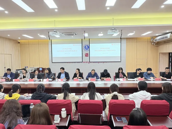 本网讯(通讯员 张丽晶/文 何佳雨/图)为增进我院2025级研究生新生与导师之间的了解,帮助新生尽快融入学术科研大家庭,营造和谐温馨的育人氛围,我院于9月26日下午在外语楼115隆重举行了2025级研究生新生导师见面会暨中秋茶话会。学院党委书记吴海平、院长孙志永、全体研究生导师以及2025级全体研究生新生、2024和2023级研究生齐聚一堂,共话学术理想,共迎中秋佳节。会议由孙志永主持。