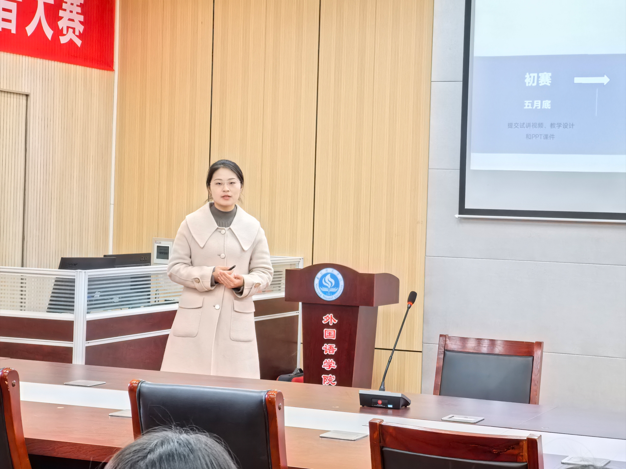 本网讯(通讯员 郭莹)为帮助全体研究生们深入了解“田家炳杯”教育硕士专业学位研究生教学技能大赛赛事详情、学习优秀备赛及参赛经验、营造浓厚的专业技能学习氛围,我院于2025年11月21日下午在外国语学院115教室召开“田家炳杯”学科教学(英语)专业研究生教学技能大赛经验分享会。本次分享会由研究生秘书张丽晶老师主持,2025年“田家炳杯”学科教学(英语)专业研究生教学技能大赛国家级三等奖获得者郭莹同学、优秀教学设计奖获得者邹丽同学担任分享嘉宾,2024级、2025级学科教学(英语)专业全体研究生参加了此次分享大会。