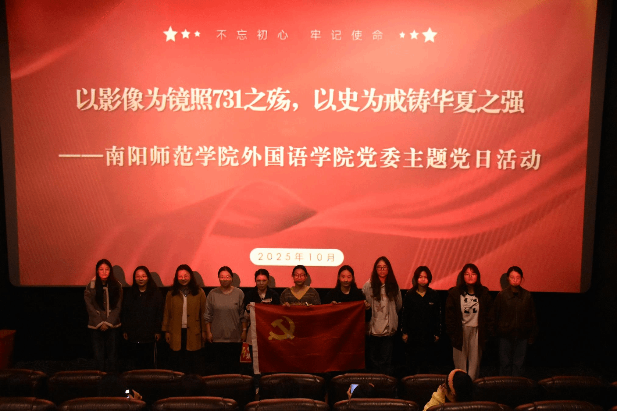 本网讯(通讯员 李斐然/文 王泓心/图)为深化党员党性教育,铭记历史教训,2025年10月17日,南阳师范学院外国语学院党委组织全院党员开展“以影像为镜照731之殇,以史为戒铸华夏之强”主题党日活动,集中观看历史影片《731》,在光影中回溯历史、凝聚奋进力量。
