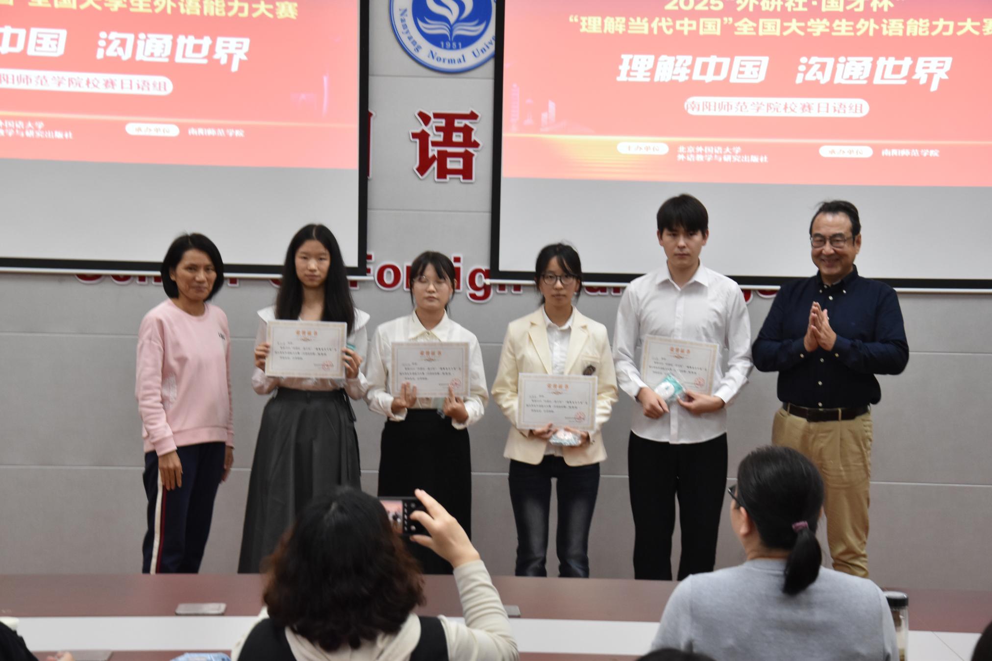 大赛紧密围绕“理解当代中国”这一核心主题,考察内容涵盖语言基本功、跨文化交际能力、以及基于中国国情的演讲与思辨能力。初赛现场,日语专业的16位选手慷慨陈词,以流畅地道的日语,围绕绿色发展、科技创新、文化传承等议题,阐述中国式现代化的内涵与成就,展现了新时代青年卓越的语言应用能力、开阔的国际视野与坚定的文化自信。其中,在本次校内初赛中获得特等奖的4位选手将代表我校出征多语种组的河南省省赛。