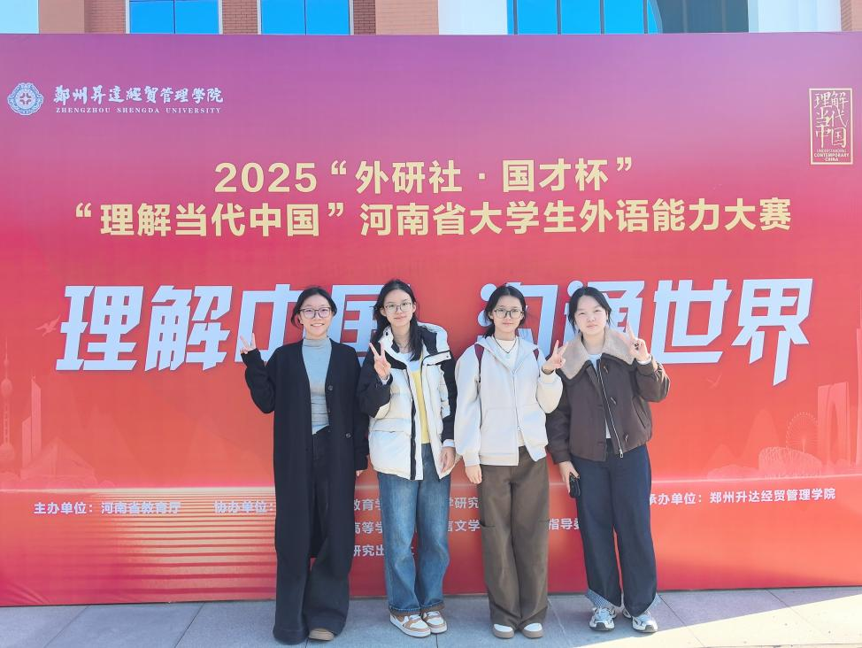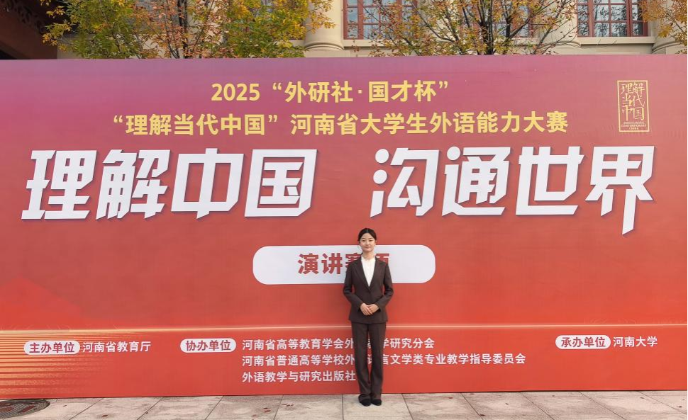 (本网讯/通讯员 郭一丹)在刚刚落幕的2025“外研社·国才杯”“理解当代中国”河南省大学生外语能力大赛中,我院学子屡创佳绩,展现出卓越的外语应用能力与时代担当。获奖名单方面,魏心盈荣获笔译赛项省级二等奖;杜怡珂、刘诗杰分获综合赛项省级二等奖与三等奖;赵子涵在口译赛项中斩获省级三等奖;孙丽阳团队与朱相缘团队则凭借出色的创意与表现,共同夺得短视频赛项省级二等奖。
