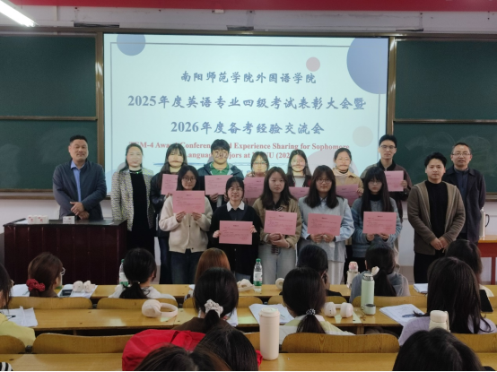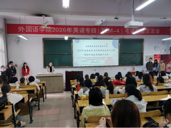 近年来,外国语学院持续狠抓教学管理,教学水平显著提升,在英语专业四、八级考试中屡获佳绩。本次会议既是对2026年专四备考的全面动员,也进一步营造了浓厚的学习氛围,有力推动学院教学质量再上新台阶!