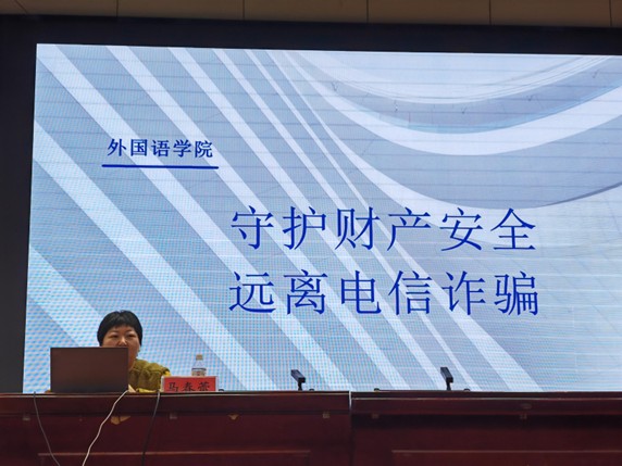 本网讯(通讯员 李斐然 张佳 辛鑫 王艺凝/图文)为切实筑牢学生反诈思想防线,构建财产安全屏障,全面提升大学生识别电信诈骗、应对诈骗风险的综合能力,近日,外国语学院在东区演播厅举办防电信诈骗专题会。本次会议由外国语学院党委副书记马春蕾主讲,2025级422名同学参会。