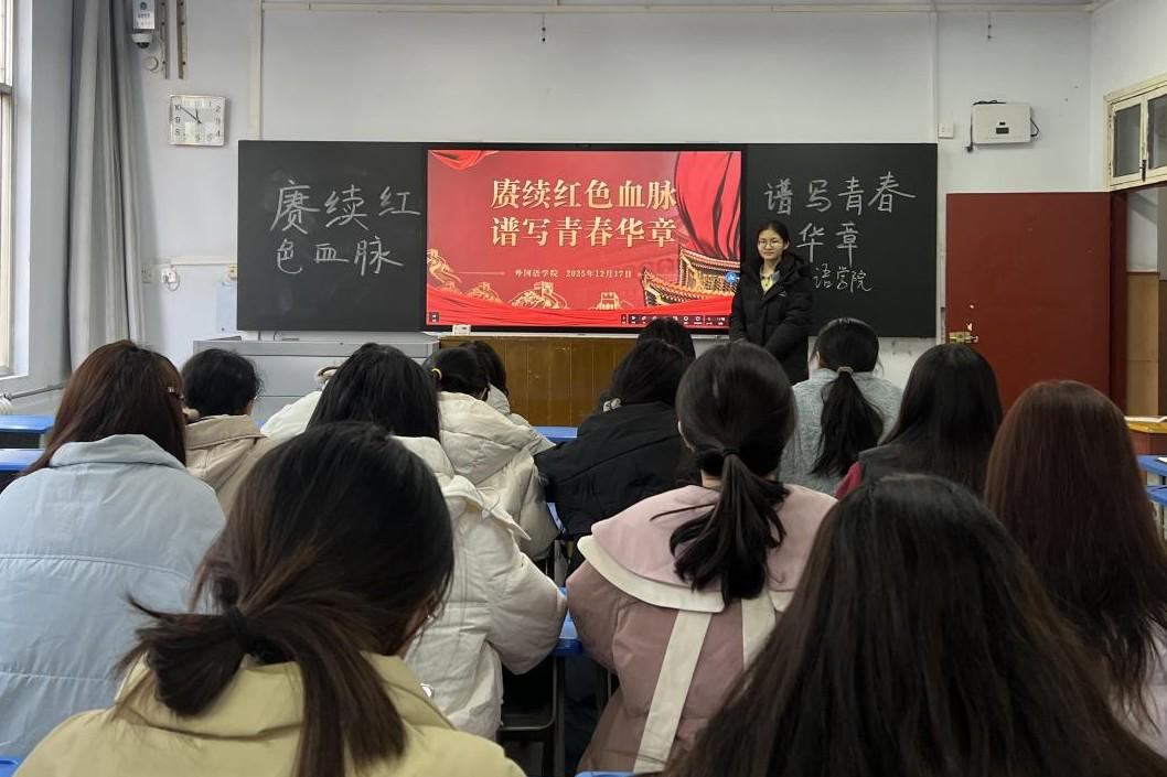本网讯(通讯员 李斐然 张佳 方蒙恩 银子惠/文 王可/图)为深入引导青年学子坚定理想信念,将个人成长主动融入国家发展大局,12月17日,外国语学院精心组织“赓续红色血脉,谱写青春华章”主题红色精神宣讲活动。本次宣讲会由学院社实部志愿者主讲,各年级学生干部代表参会。